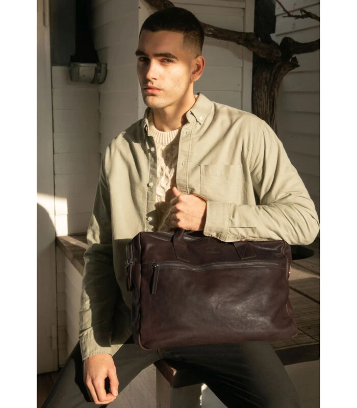 Axel is een geweldige en eenvoudige aktetas van hoogwaardig leer die voldoende ruimte biedt voor alles wat je in het dagelijks leven nodig hebt. De tas heeft twee grote vakken die beide sluiten met een rits. Axel kan worden gedragen aan de twee handgrepen of aan de afneembare en verstelbare schouderriem. Aan de buitenkant is er een zakje met rits aan de voorkant dat voldoende ruimte biedt voor portemonnee, sleutels enz.
