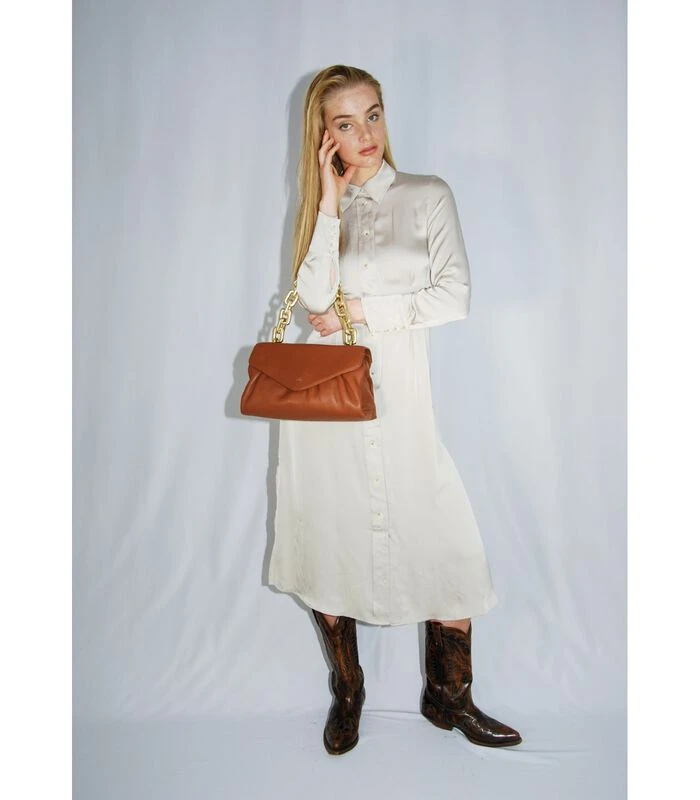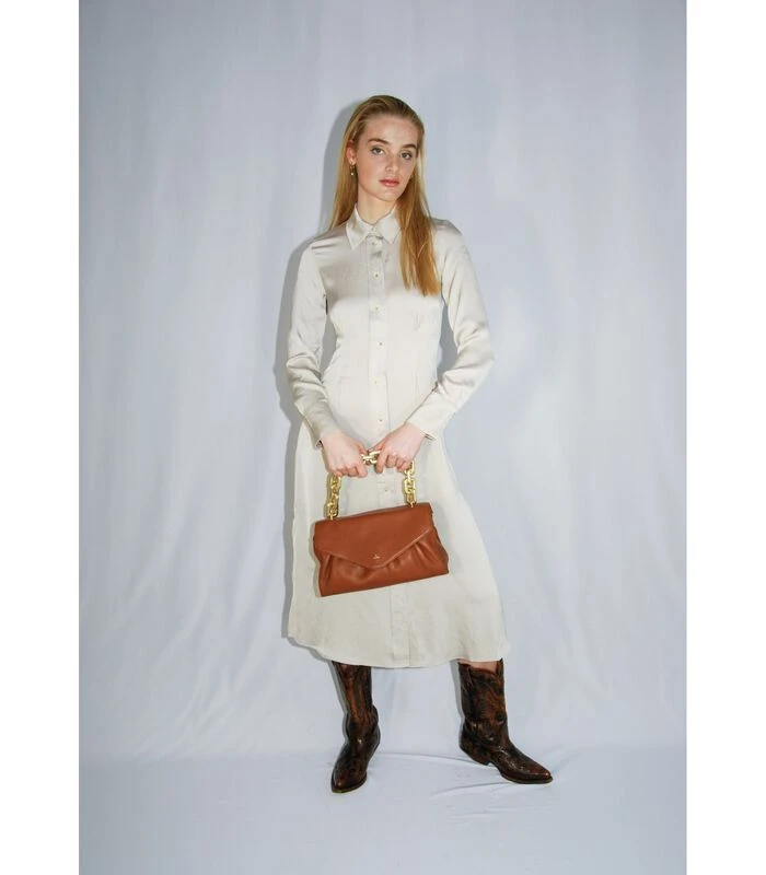 Chantal is versierd met een mooie en stevige metalen ketting in mat goud. Door het ontwerp en het gewicht van de ketting is de tas comfortabel en gemakkelijk over de schouder te dragen. Deze tas is perfect voor feestjes, maar ook voor dagelijks gebruik.
