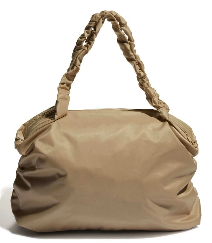 Verstop je trainingsspullen niet meer onder de tafel. Zet deze tas op terwijl je wacht tot je vrienden arriveren voor een post–workout brunch. Het zachte, drapey materiaal heeft een satijnen, runway–waardige look. Dit product is gemaakt van een reeks gerecyclede materialen, met ten minste 60% gerecycled materiaal, en is slechts een van onze oplossingen om te helpen een einde te maken aan plastic afval. Afmetingen: 14 cm x 48 cm x 32 cm