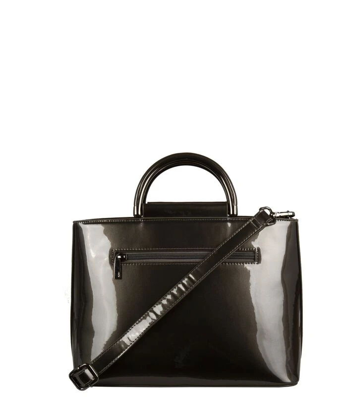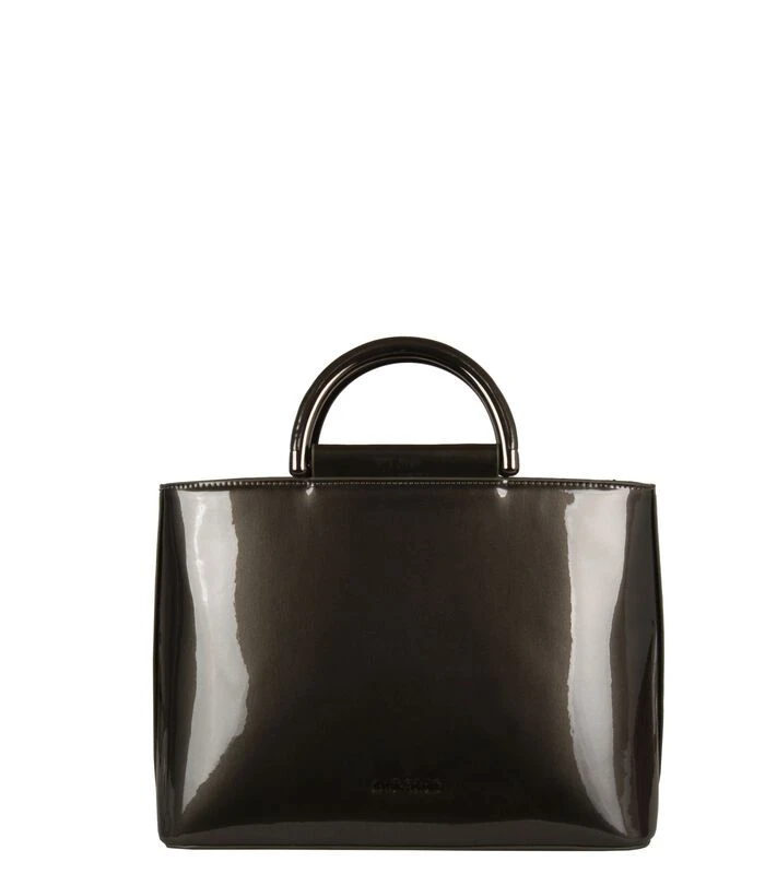 Deze moderne retro taupe handtas Aster, is een super modern tasje waarmee je dit seizoen helemaal on–trend bent. De lak handtas geeft een chique uitstraling door de kleur taupe.Deze handtas heeft dubbele handvatten en draagt comfortabel in de hand. Dankzij de extra meegeleverde (verstelbare) schouderband, kan de tas op verschillende manieren gedragen worden. Aan de binnenkant heeft deze tas een hoofdcompartiment met één binnenvakje. Aan de achterkant bevindt zich een extra vakje. De tas wordt gesloten met een rits. De metaalkleur is een donkere, antraciete kleur. De afmetingen (breedte / hoogte / diepte) van deze handtas zijn 28x21x12 – 6 cm