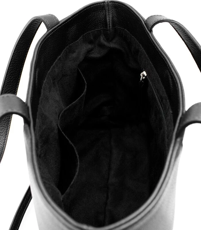 De draagtas “Suzanne” van zwart generfd rundleer is een onmisbaar accessoire voor alle vrouwen. Met zijn gezellige en eigentijdse stijl respecteert hij de codes van de vrouwelijke mode.