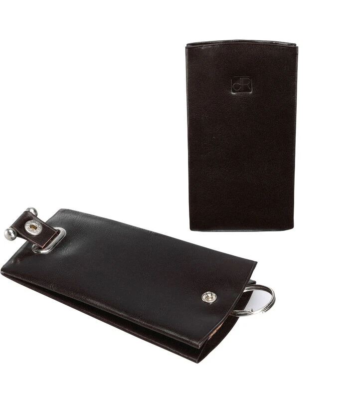 Deze van rundleder gemaakte sleutel–etui is erg handig voor het netjes opbergen van je sleutels. Het heeft een sleutelring om sleutels aan te bevestigen. Wanneer het bandje los wordt gemaakt kan de ring uit het zakje worden geschoven. Wanneer het bandje vast zit is het een handig handvat en blijven de sleutels netjes in de etui. Het sleutel–etui wordt standaard geleverd in een mooie geschenkverpakking.