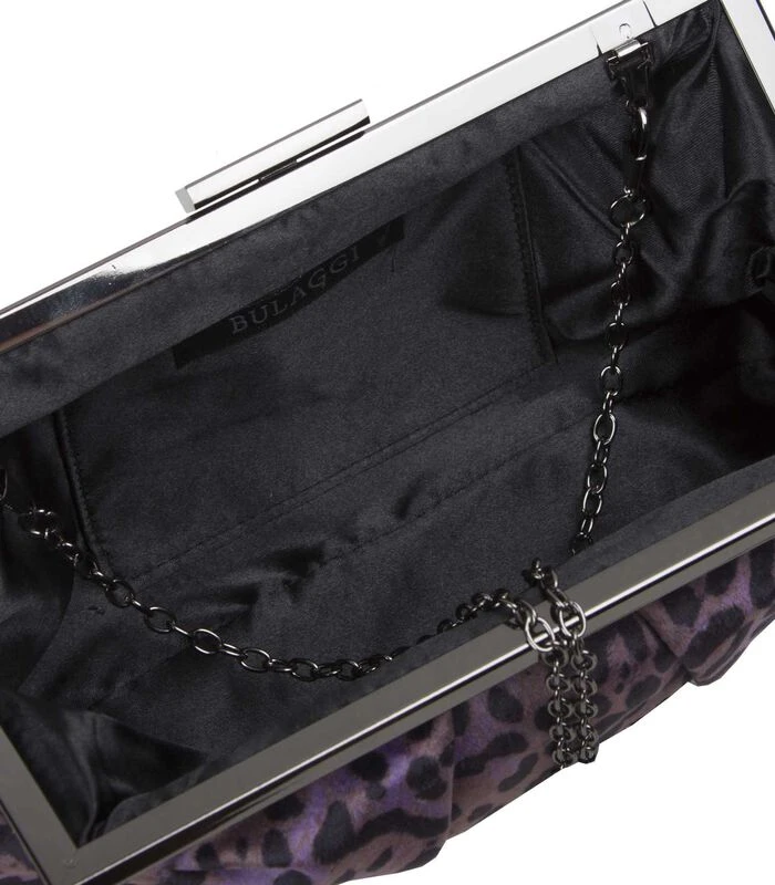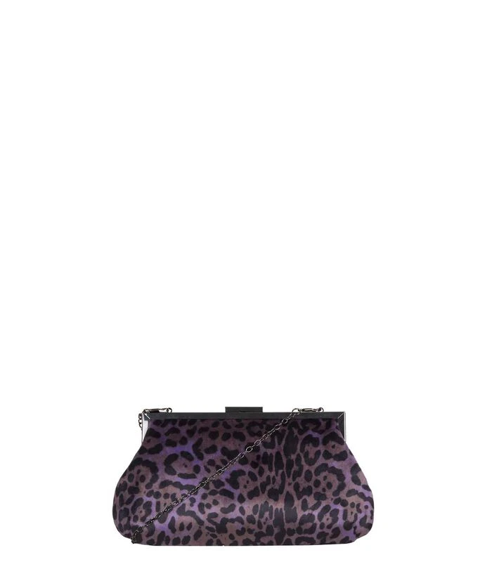 Deze casual chique clutch Paw, is een absolute must–have voor een avondje uit. Dit fluweelzachte tasje heeft een all–over luipaard print in de kleuren paars/zwart. Bij deze clutch ontvang je een afneembare schouderketting. Aan de binnenkant heeft deze tas een hoofdcompartiment met één binnenvakje. Deze clutch sluit met een knipsluiting. De metaalkleur is een donkere, antraciete kleur. Bekijk ook eens de bijpassende portemonnee met dezelfde print. De afmetingen (breedte / hoogte / diepte) van deze clutch zijn 27 x 15 x 02 cm.