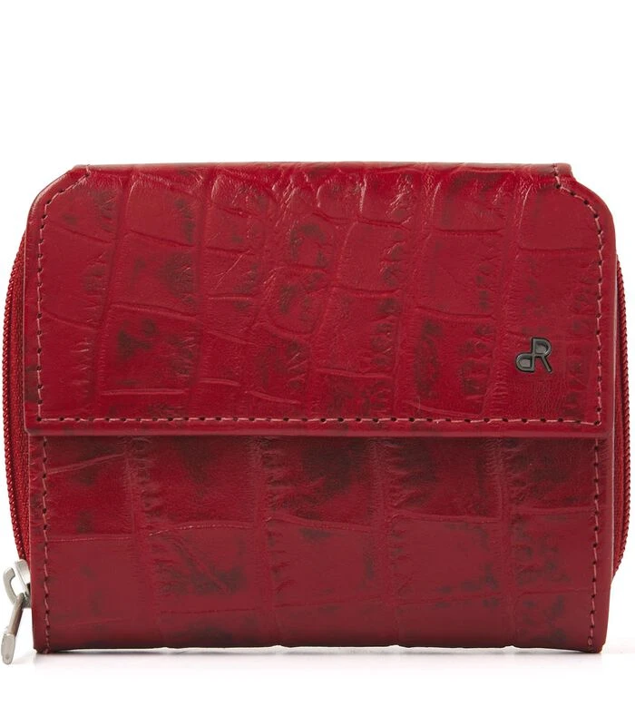 Deze compacte damesportemonnee is gemaakt van rundleder met een croco printje. De portemonnee bestaat uit twee delen. Het voorste deel wordt gesloten met een klep met druksluiting en bevat acht vakken voor betaalpassen, een steekvak voor papiergeld en drie extra vakken. De achterzijde wordt gesloten met een rits en bevat voldoende ruimte voor het opbergen van muntgeld. De portemonnee beschikt over RFID protectie. DIt beschermt tegen het skimmen van betaalpassen.