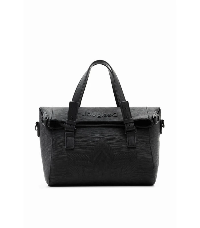 Converteerbare middelgrote tas van leerachtige stof met ster in reliëf, met verschillende handvatten en zakken.