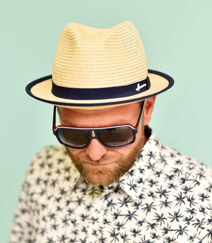 Eenkleurige hoed van papierstro met licht opstaande kleine rand. Het tweekleurige grosgrain lint en het verticale lint aan de achterkant van de hoed bezorgen het een unieke, bijzonder trendy stijl.