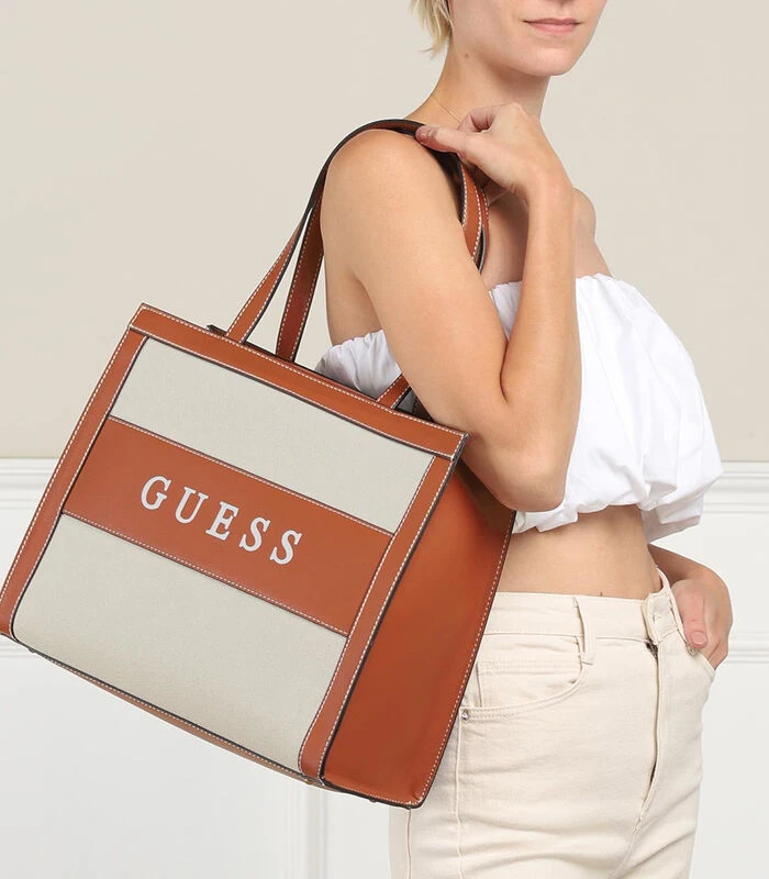 De buitenkant van deze Shopper is gemaakt van in de kleur beigebruin. De Shopper heeft een inhoud van liter. De GUESS tassen zijn licht van gewicht en bieden dus optimaal draagcomfort. Van een GUESS tas heb je jarenlang draagplezier! Dit is de ideale tas voor Dames.