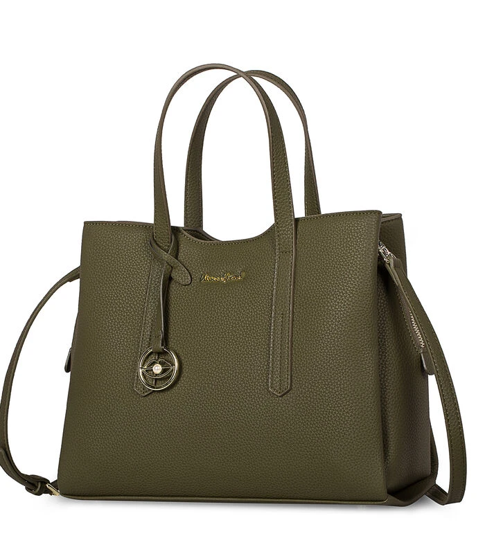 Deze handtas bevat 3 onderverdelingen en heeft als extra een lange riem zodat u deze overal mee naartoe kunt nemen.