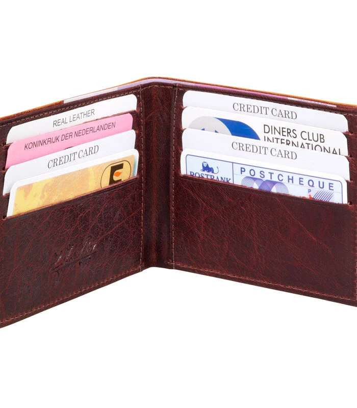 Dit is de perfecte platte billfold welke nergens te veel ruimte in beslag neemt. De billfold is gemaakt van gewaxt rundleder en beschikt over een RFID bescherming in de voering. Doordat er aan de binnenzijde enkel ruimte is voor briefgeld, bonnetjes en diversen creditcards blijft hij mooi compact en kun je hem makkelijk in je broekzak of jas meenemen. Dit model is uitgevoerd in een zwarte of mooie donkerbruine kleur en heeft een oranje afwerking aan de randen.