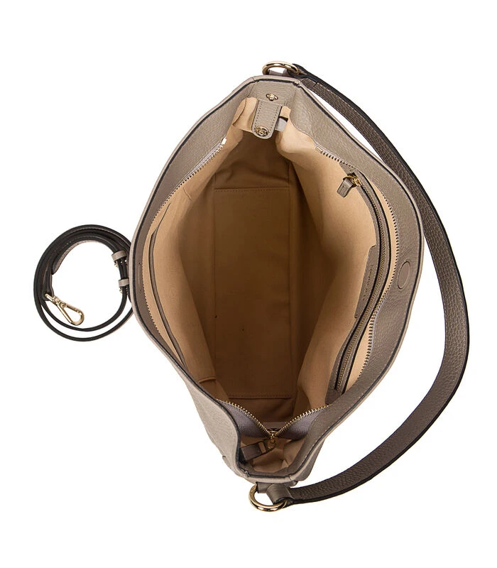 Deze handige schoudertas is vervaardigd uit kwaliteitsvol leder. U kunt de tas sluiten met zowel rits of magneetknop. De bodem van de tas is verbreedbaar door een rits.