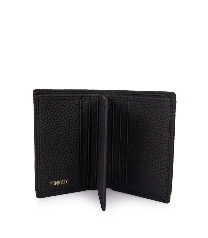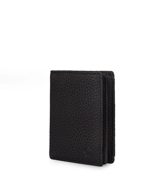 Een kleine lederen heren portefeuille vervaardigd uit kwaliteitsvol leder. Deze portefeuille beschikt over een geldbeugel en verschillende compartimenten voor kaarten en biljetten.