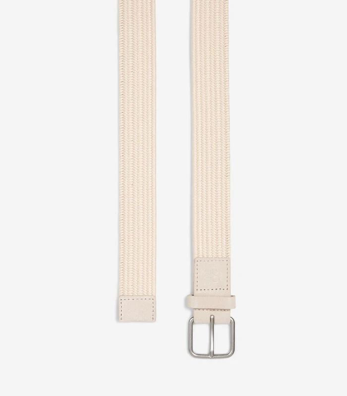Superflexibel: hoogwaardige gevlochten riem van gerecycled polyester. Elastisch, gevlochten en individueel aan te passen. Met klassieke breedte, is zacht en soepel en heeft stijlvolle details van echt leer. Het rechte uiteinde is bekleed met leer en de gesp van geborsteld metaal wordt vastgemaakt met een stuk suède met logoreliëf, een leren passant en een geïntegreerde leren band.
