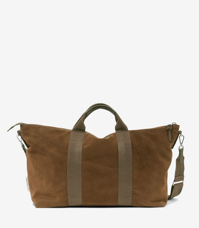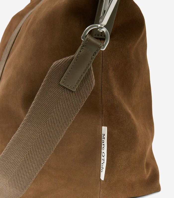 Een perfect formaat voor een spontaan weekendje weg: casual, slouchy weekendtas van zacht suède van hoogwaardig rundleer dat afkomstig is uit door de LWG gecertificeerde looierijen. Het grote binnenvak heeft een voering van organic cotton, een ritsvak opzij en een logolabel van echt leer als muntvakje. Kan op twee handige manieren worden gedragen: eenvoudig in de hand met het hengsel, of als de tas wat zwaarder is, aan de afneembare schouderriem die in lengte verstelbaar is.