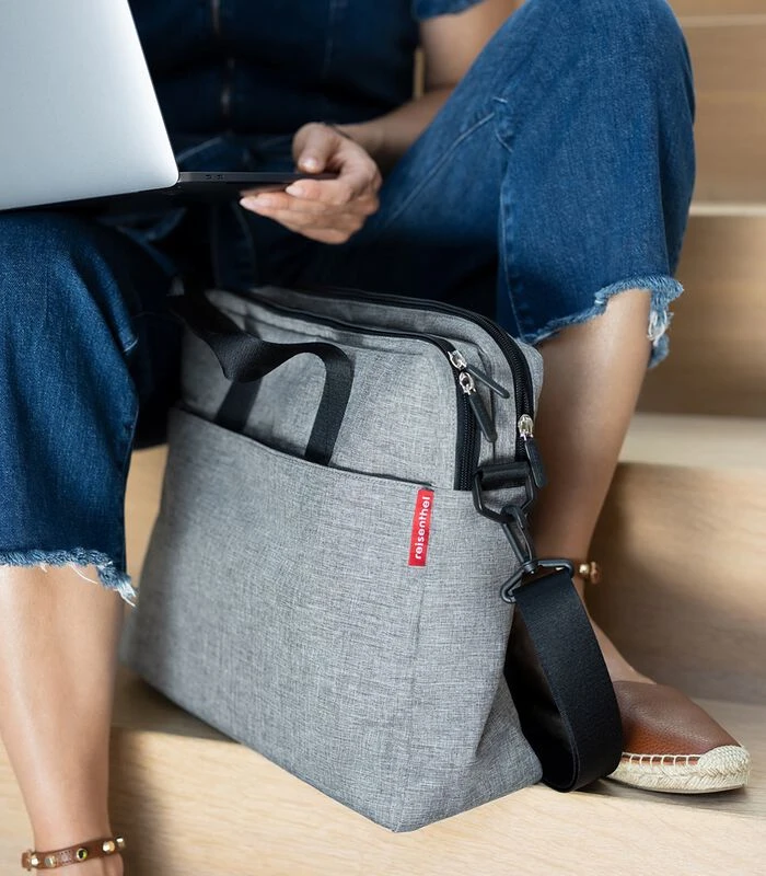 Gewoon een praktische tas voor naar je werk, dat is de reisenthel workbag! Alles wat je mee wilt nemen heeft een eigen plek in deze werktas, het voorvak met organiser voor je pennen, mobiel en bankpassen of het hoofdvak met 3 compartimenten voor A4 documenten. Wat dacht je van een zacht laptopvak voor je 15” laptop. Ga je veel met het vliegtuig? Dan is de sleeve op de rug van de tas super handig, deze past over de telescoopstang van je koffer zo hoef je de tas niet te dragen. Draag je hem liever over je schouder, met de afneembare schouderband of liever in de hand, het is mogelijk. O, ja voor we het vergeten, de tas is strak vorm gegeven en past bij iedere outfit.