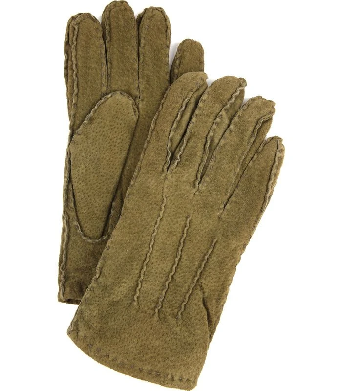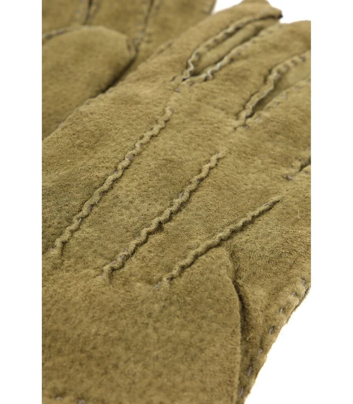Een bijzonder paar handschoenen in een wel heel speciale kleur. Met deze handschoenen is het koud hebben al gauw verleden tijd. Met de warme polyester voering blijven uw handen goed warrm. De handschoenen zijn afgewerkt met 3 gestikte opnaden op de bovenzijde.Olijfgroene Laimbock handschoenenGemaakt van 100% leer, voering is gemaakt van 100% polyester