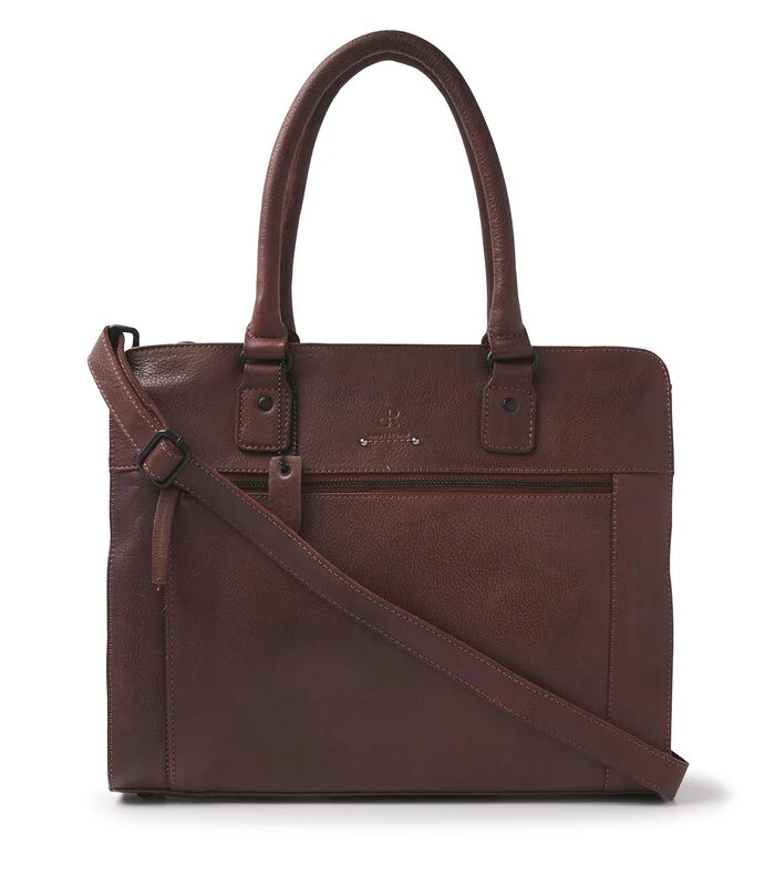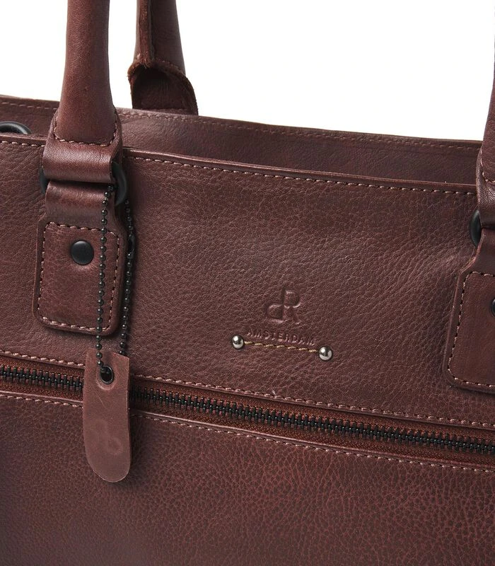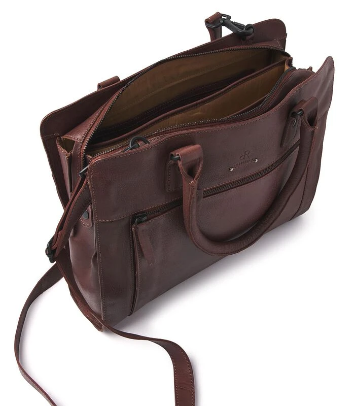 Deze stoere werktas is gemaakt van zacht rundleder en heel fijn om mee te nemen. De tas kun je op verschillende manieren dragen door de verstelbare en afneembare schouderband en handvaten. Om de tas veilig af te sluiten is er een bovenrits, waaronder zich diversen opbergvakken bevinden. Het middelste vak heeft een softpadded compartiment, waardoor je makkelijk je tablet mee kunt nemen. Ook zijn er nog een ritsvak, speciaal telefoonvakje en sleutelhanger aanwezig. De buitenzijde heeft zowel aan de voor– en achterzijde een ruim ritsvak.