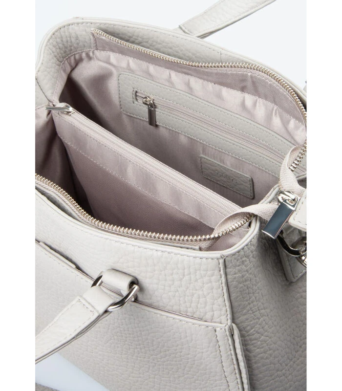 Schoudertas van TREATS van leer met polyester voering, twee draaghengsels en een verstelbare en afneembare schouderriem. Het hoofdvak wordt afgesloten door een hoogwaardige YKK–ritssluiting. De twee buitenste vakken kunnen worden afgesloten met magneetsluitingen. Binnenin heeft het ‘Abeline’–model nog twee YKK–zakken met rits en twee steekzakken.