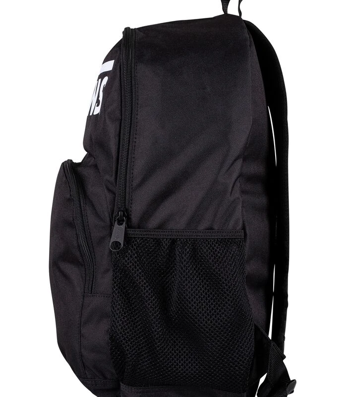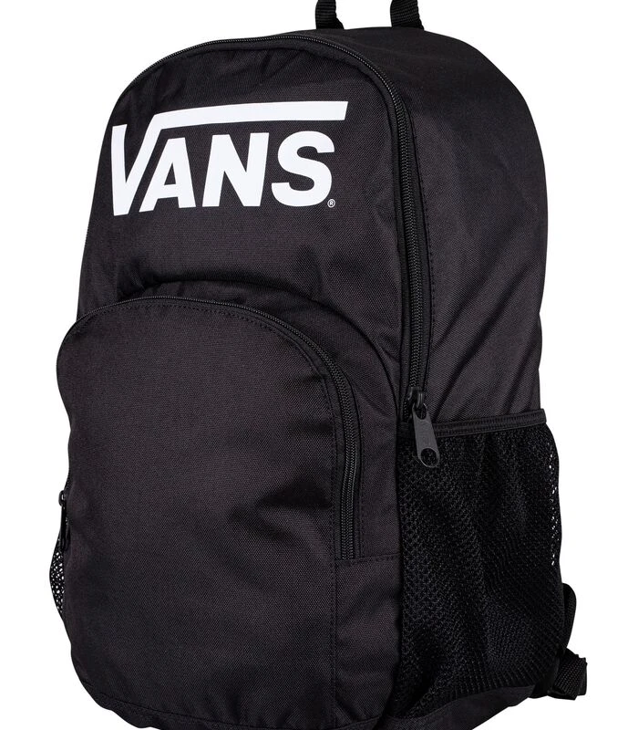 De Vendor Backpack van Vans heeft een merklogo op de voorkant, elastische zijvakken van mesh en verstelbare gewatteerde banden. Deze rugzak is verkrijgbaar in de kleur zwart en heeft een voorvak met ritssluiting en binnenmouwen, en een hoofdvak met ritssluiting en een laptopvak.