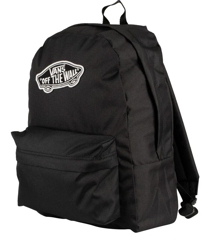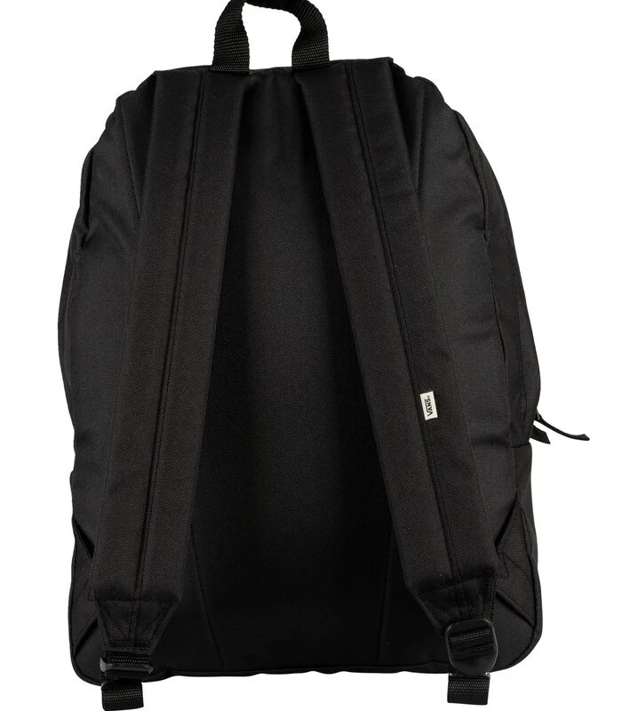 De Realm–rugzak van Vans wordt geleverd in zwarte kleur, met verstelbare, verstelbare kussens met merklabel en een laptopvak aan de binnenkant. Deze rugzak heeft een geborduurd logo op de voorkant, een hoofdcompartiment met rits en een klein compartiment met rits aan de voorkant. Afmetingen: 42.55H x 32.39W x 12.38D cm.