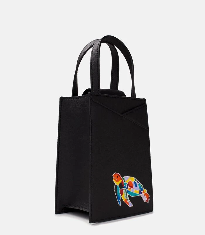 Zoë Mini -tas Handpilderde Schildpad Zwart